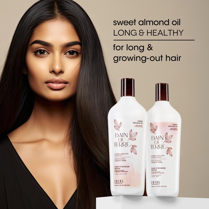 Bain de Terre Sweet Almond Oil Long & Healthy Shampoo, Strength & Protection for Weak, Damaged Hair, with Argan & Monoi Oils, Paraben-Free, Color-Safe, Vegan, 13.5 Fl Oz