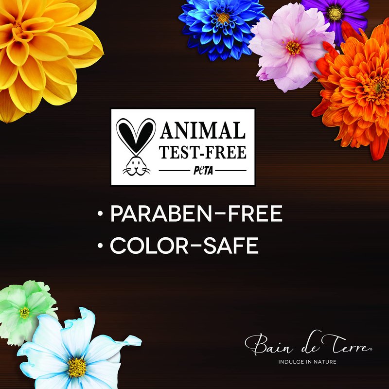 - Bain de Terre products are animal test-free and PETA certified. Our hair products are NOT tested on animals. Paraben-Free. Color-Safe. We exhaustively test our products so we can ensure they meet our rigorous standards and back them up with proven claims.