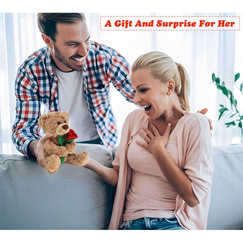 Bakalizoo 12'' Stuffed Teddy Bear Dolls with Rose, Soft Plush Animal Toys for Valentine's Day Her/Girlfriend Lover Mom Kids Gifts