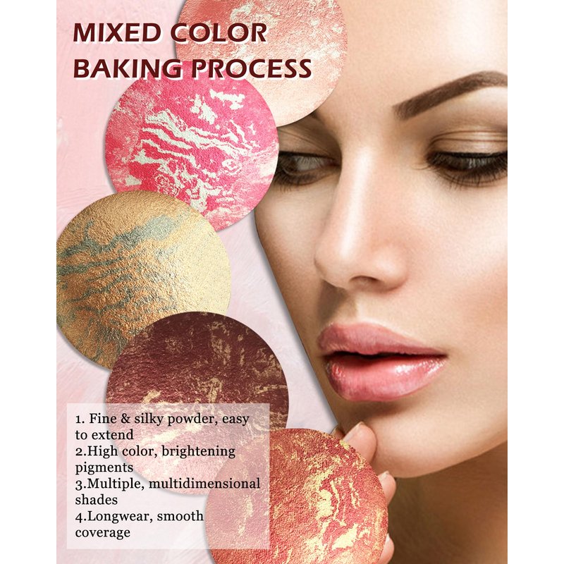 - CREAMY, SILKY BAKED BLUSH - This luxurious blush features a highly pigmented baked texture, fine & blendable silky baked blushes that adds color accents to cheeks and any other area where you want to add a touch of color for a fresh, healthy looking complexion. Never tested on animals blush makeup with paraben-free, vegan and cruelty-free formula that suitable for all skin types to build and accentuate facial features.