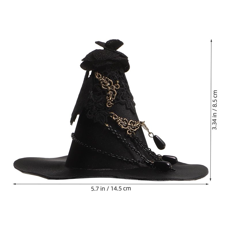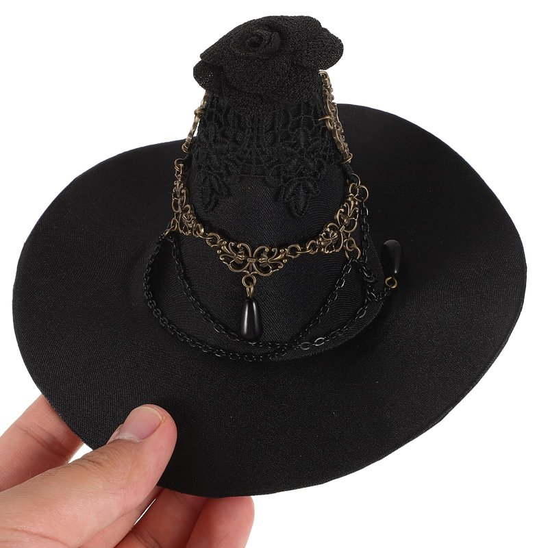 Balck Witch Hat Gothic Rose Tassel Decor Hair Clip Hair Accessories for Halloween Party