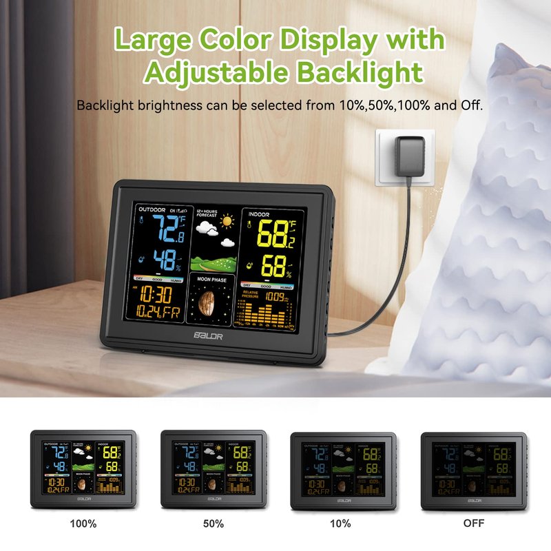 BALDR Weather Station Indoor Outdoor Thermometer Digital Color LCD Moon Phase Barometric Pressure Temperature Humidity Monitor