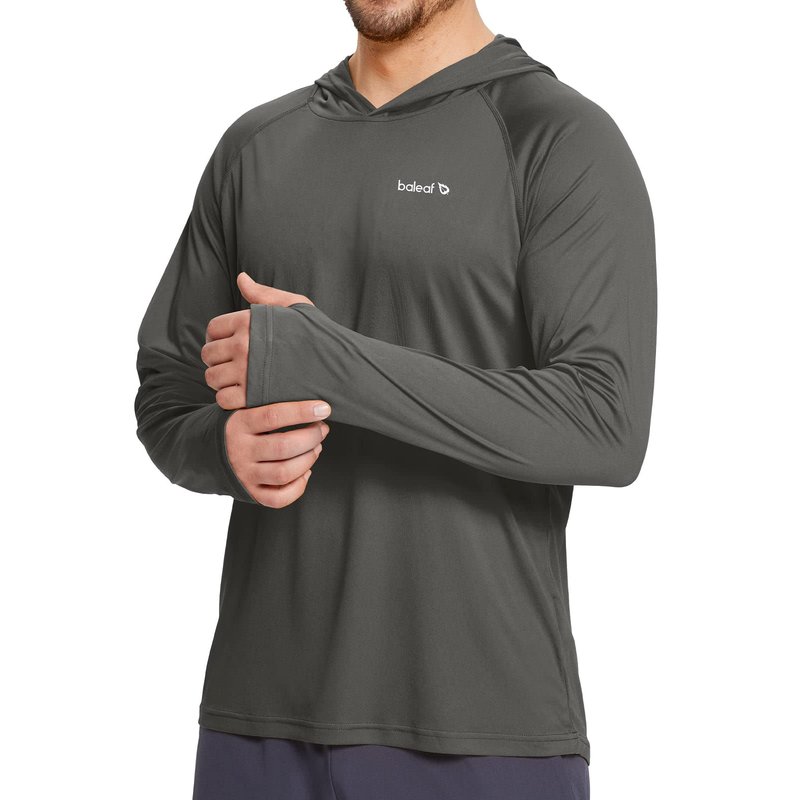 BALEAF Men's Sun Protection Hoodie Shirt UPF 50+ Long Sleeve UV SPF T-Shirts Rash Guard Fishing Swimming Lightweight Deep Gray M