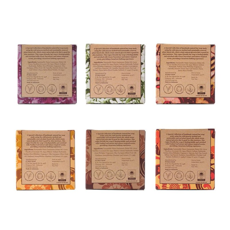 Bali Soap - Batik Gift Set - Handmade Moisturizing Natural Soap Bar for Face & Body, Vegan Handmade Plant Based, 3.5 Oz each Mix 6 Pack (Jasmine/Lemongrass/Ginger/Magnolia/Papaya/Sandaldwood)