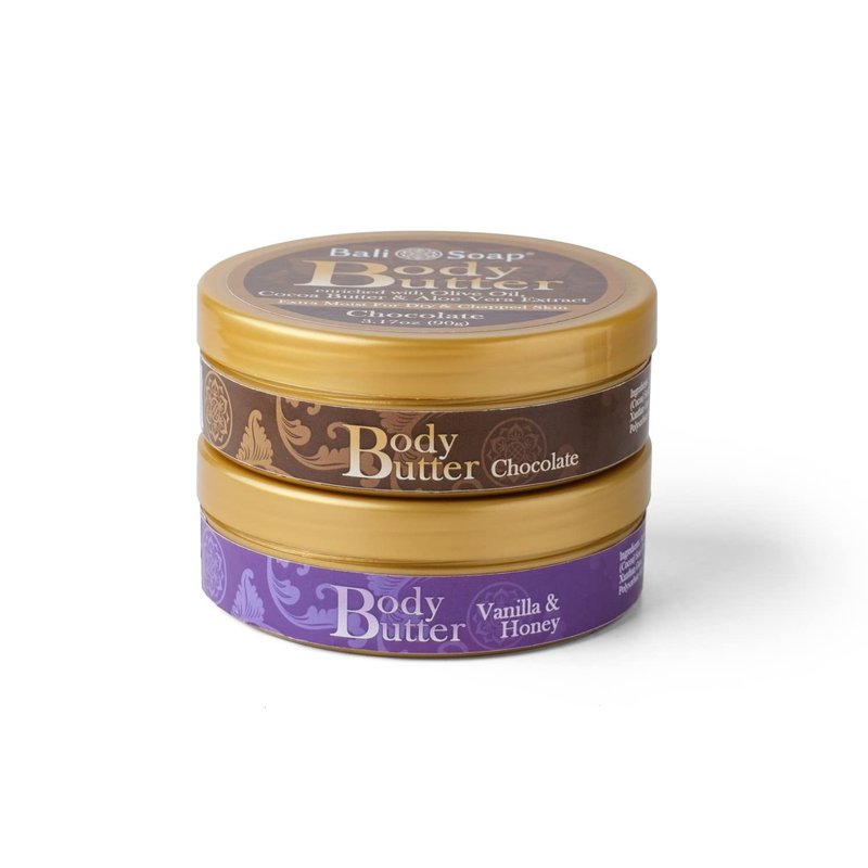 Bali Soap - Chocolate & Vanilla Honey Body Butter - Scented Body Cream for Women & Men - Cocoa Butter Aloe Vera Extract, 2 Pack Gift Set 3.1 Oz Each