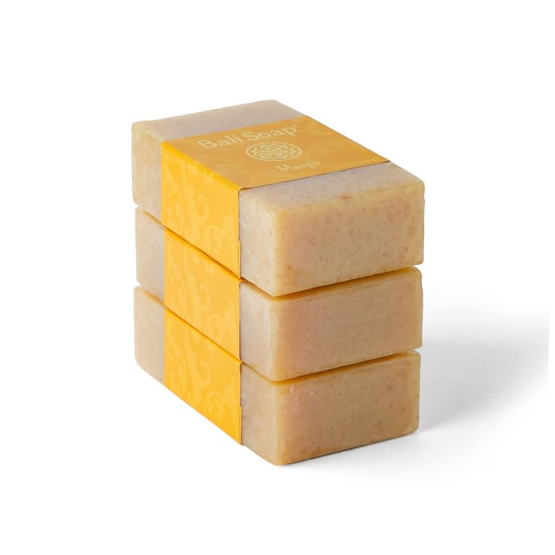 - EXOTIC NATURAL SOAP: Naturally exotic soap from Bali! Crafted in a cold process method using plant-based ingredients and textured with botanicals from the Indonesian archipelago. Bali Soap natural glycerin bars gently exfoliate and moisturize the skin with ultra-nourishing lather, rinsing off clean without residue and leaving only the fresh tropical scent of mango.