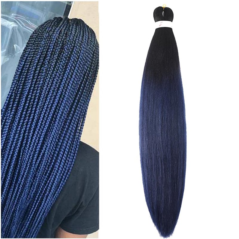 BALINGHAIR Braiding Hair Pre-Stretched High Temperature Synthetic Fiber Braid Hair Ombre Black to Dark Blue (B20-1Pack)