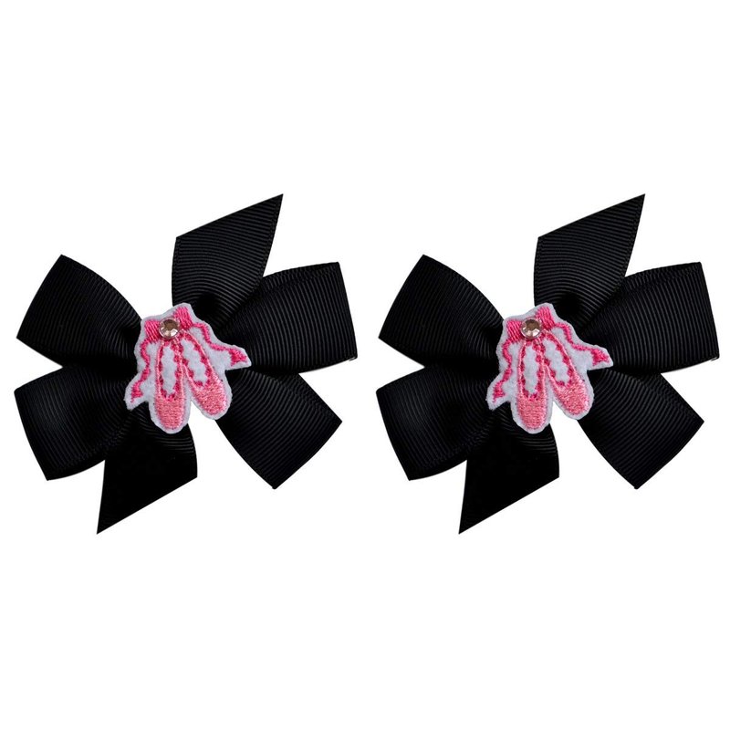 Ballet Slipper 3 inch Grosgrain Bow Hair Bow Set Ballerina Recital Gift (Black Set)