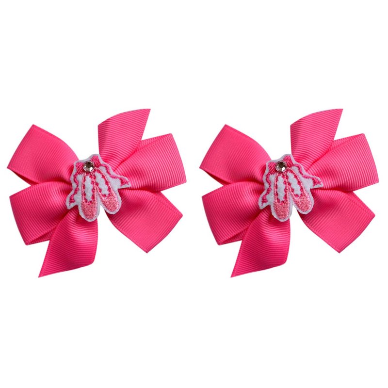 Ballet Slipper 3 inch Grosgrain Bow Hair Bow Set Ballerina Recital Gift (Hot Pink Set)