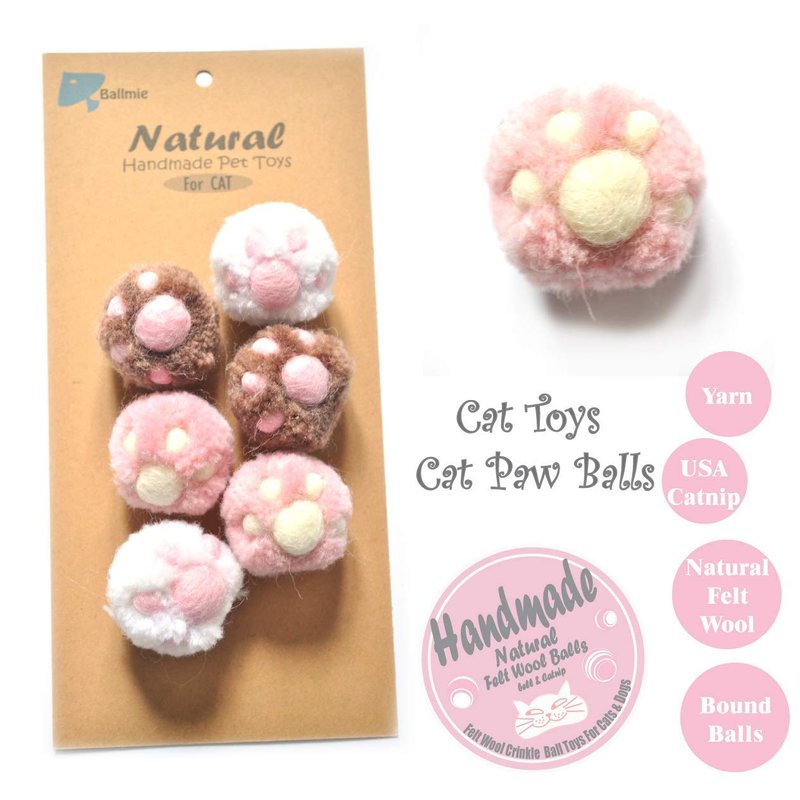 BALLMIE Cat Toys Ball Cat Owl Balls for Cats, Catnip Handmade Felt Wool & Yarn (Paw)