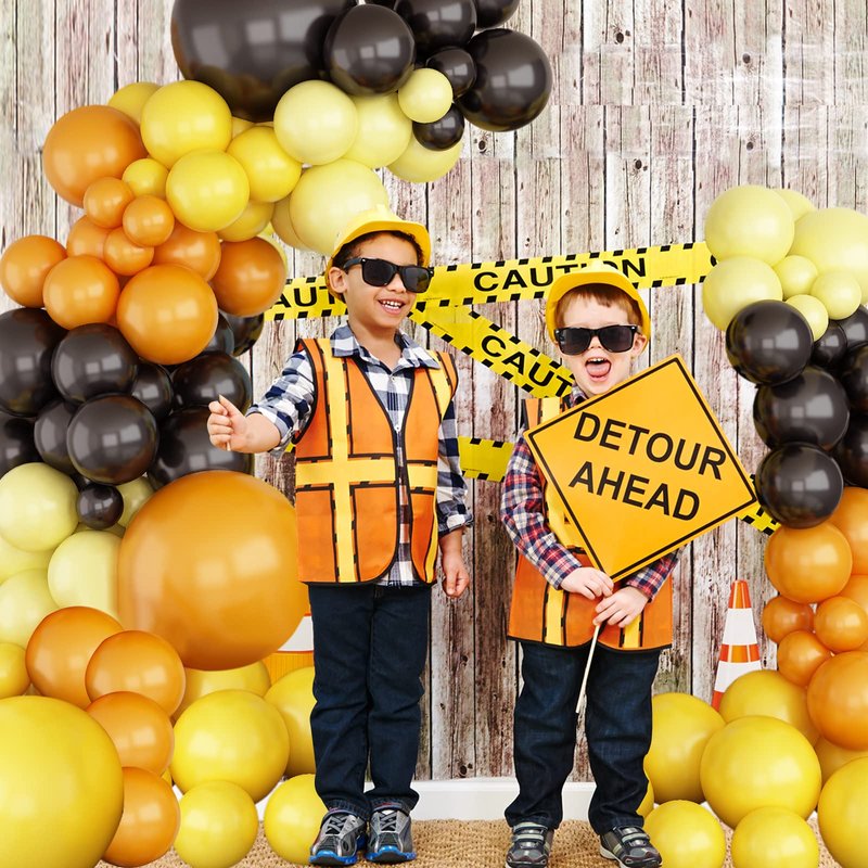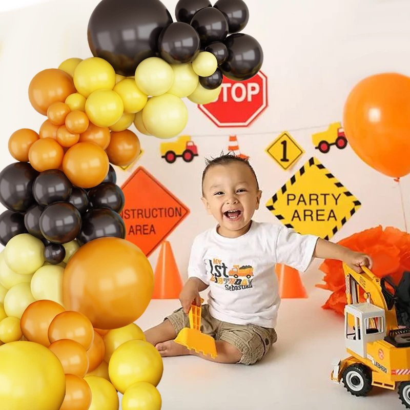 - Construction Black Yellow Balloon Arch:include 1*18 inch black, 1*18 inch yellow, 1*18 inch retro orange, 8*5 inch black, 8*5 inch yellow, 8*5 inch macaron yellow, 15*10 inch black, 20*10 inch yellow, 20*10 inch retro orange, 15*10 inch macaron yellow.Satisfy everything you need in your boy's dream construction party