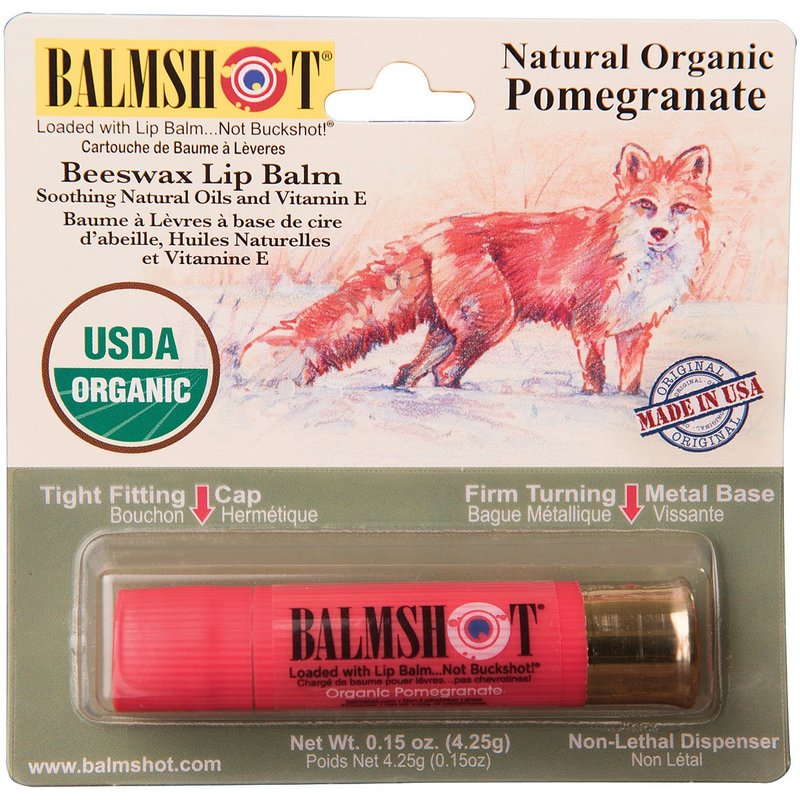 - Balmshot Organic Lip Balm is a beeswax lip balm with soothing, natural oils and Vitamin E. Packaged within a 20 g shotgun shell. Weight: .15 oz.
