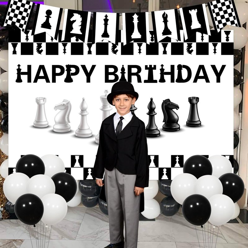 - Attractive design: The chess themed backdrop banner is eye-catching for the striking bold HAPPY BIRTHDAY in the middle with classical black and white color and surrounding designed checkered chess, a big photo background surprise for chess lovers.