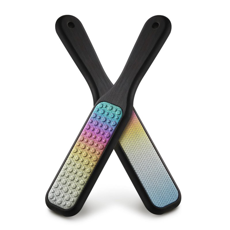 - DOUBLE SIDED FOOT FILE : Our foot scraper has two excellent pedicure sides. One side focuses on thicker, harder skin, removing unwanted foot calluses and rough spots. The other foot filing side mainly targets thinner skin to safely remove dead skin and smooth cracks.