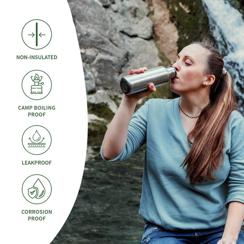 • MINIMALISTIC DESIGN: This uninsulated water bottle 16 oz comes without any paint to ensure scratch resistance and durability. The neutral design makes the metal water bottles ideal for work, hiking, yoga, travelling and all everyday activities.