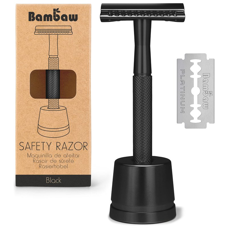 Bambaw Double Edge Safety Razor, Single Blade Razor for Men with Razor Stand, Men's Safety Shaving Razors – Black