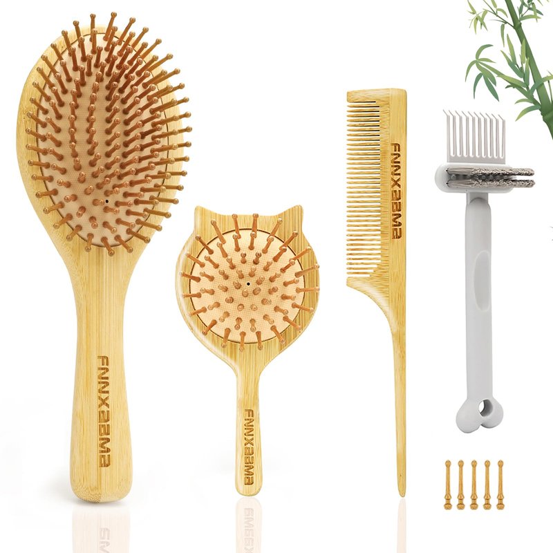 - 【Eco-Friendly and Sustainable】Our bamboo brush is made from 100% natural bamboo, ensuring no static and plastic pollution. Bamboo is a naturally sustainable material, making this hairbrush set an eco-friendly choice for your hair care routine.