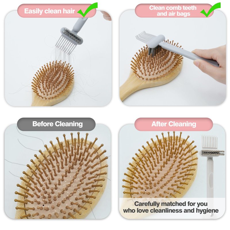 A paddle brush and baby hair brushes mini travel bamboo hair brush and rat tail comb, allows you to easily manage your hair, no matter you have long or short hair, straight or curly hair, the small bamboo brush is suitable for children or use it when going out, the brush cleaning tool can easily remove the hair on the hairbrush and clean the comb teeth.