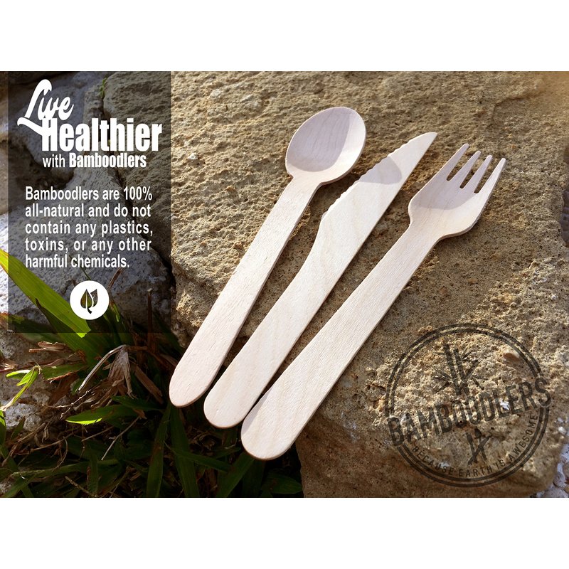 ★ 100% NATURAL! - Bamboodlers Disposable Wooden Cutlery are a great alternative to its Bamboo counterpart. They are made from 100% all natural Birchwood. Like Bamboo, Birchwood is Eco-Friendly, non-toxic, and sturdy but at a fraction of the price.