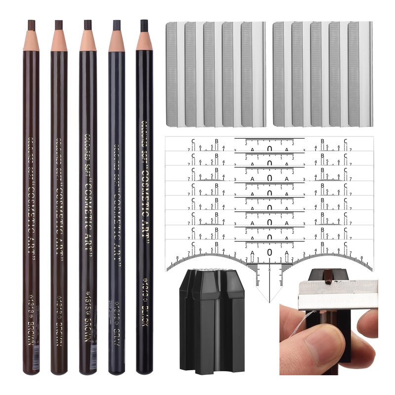 - 【Complete Kit】The package is including 5pcs eyebrow pencils, 100pcs eyebrow rulers, 10pcs scraping eyebrow knives and 1pc pencil sharpener. The complete kit is convenient and practical. It can effective in shaping and eyebrows. Perfect for accurate measurements and symmetrical marking, and create perfect brow proportions.