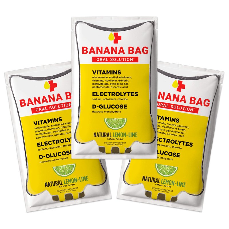 Banana Bag Oral Solution - Pharmacist Hydration Recovery Formula - Electrolyte & Vitamin Powder Packet Drink Mix - Natural Lemon Lime - Pack of 15