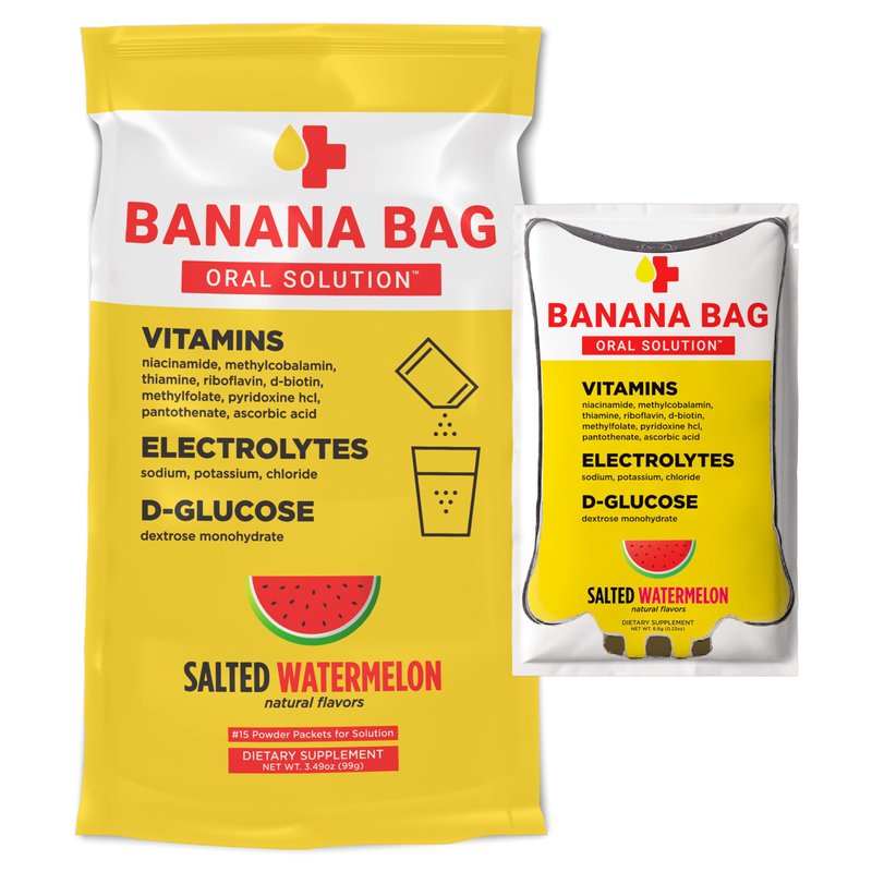 Banana Bag - Pharmacist Hydration Recovery Formula - Electrolyte & Vitamin Powder Packet Drink Mix - Salted Watermelon 15-Pack