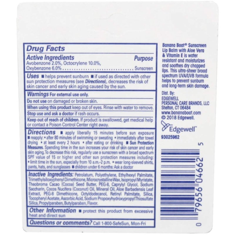 Banana Boat Sunscreen Aloe Vera with Vitamin E Broad Spectrum Sun Care Sunscreen Lip Balm - SPF 45, 0.15 Ounce (Pack of 24)