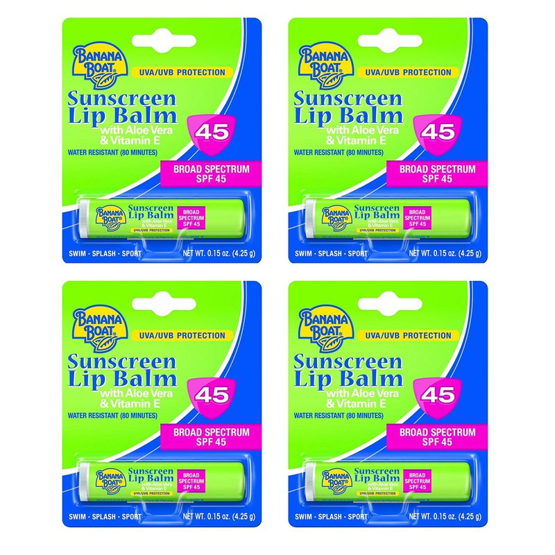 Banana Boat Sunscreen Lip Balm Aloe Vera With Vitamin E SPF 45 0.15 oz (Pack of 4)