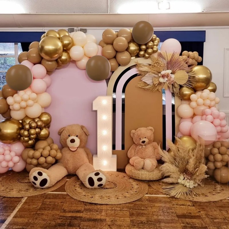 - Convenient:These brown pink bear balloons are very convenient when inflated. Suitable for setting up baby bear party scenes quickly. These boho brown khaki pink balloons can be reused, are easy to fold, and do not take up space.
