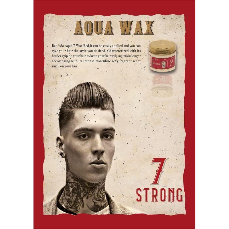 Bandido Aqua Wax 7 Red provides strong hold and keeps hair manageable. Characterized with its harder grip on your hair, it keeps complex styles in place, providing shine, texture, and volume. Bandido Aqua Wax has a light and masculine sexy scent that everyone will love. Application is easy--just take the desired amount in your hand and spread equally into your hair. Need more hold? Check out Bandido Aqua Wax 8. Want something lighter? Bandido Aqua Wax 7, 6, 5, or 4 has you covered.