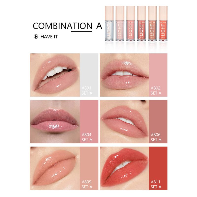 BANGFENG 6PCS Lip Oil Light Lipgloss Set, Moisturizing Hydrating Lip Glow Oil Lip Gloss Kit High Shine Lip Plumping Glass Finish Liquid Lipstick for Women (Set A)