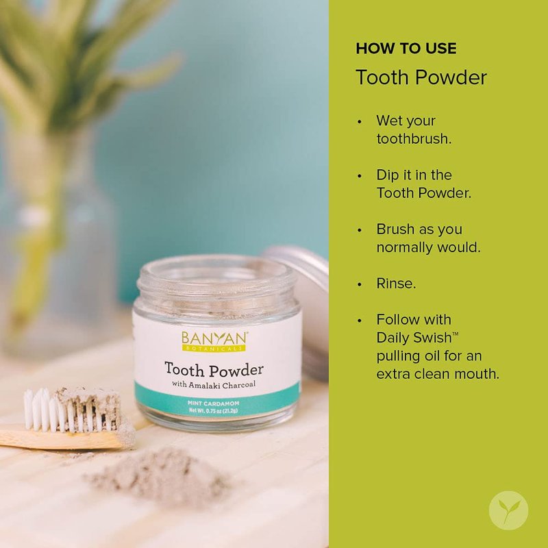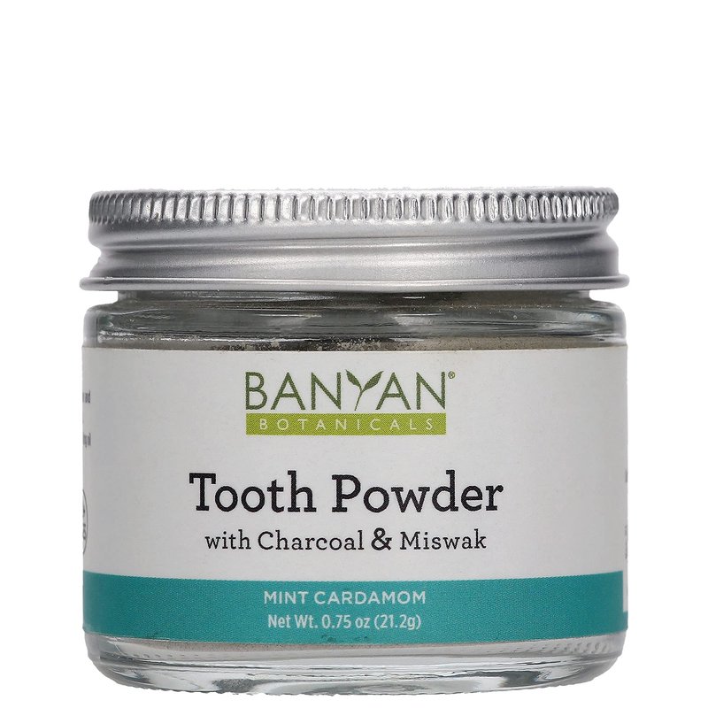 Banyan Botanicals Mint Cardamom Tooth Powder, Fluoride-Free, Ayurvedic, 0.75oz, 80+ Uses, Non GMO, Vegan, Activated Charcoal, Miswak