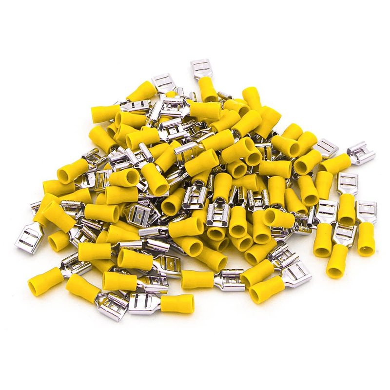 Baomain 1/4" Female Quick disconnects Vinyl Insulated Spade Wire Connector Electrical Crimp Terminal 12-10 AWG Yellow (100PCS)