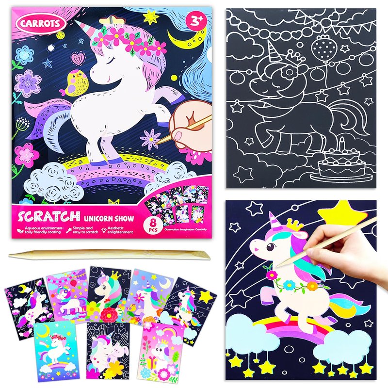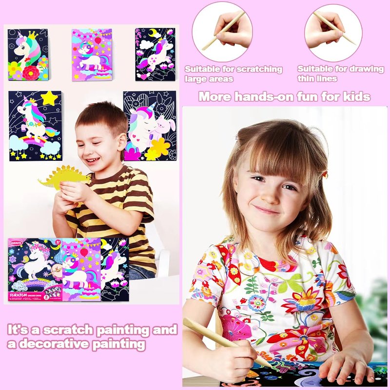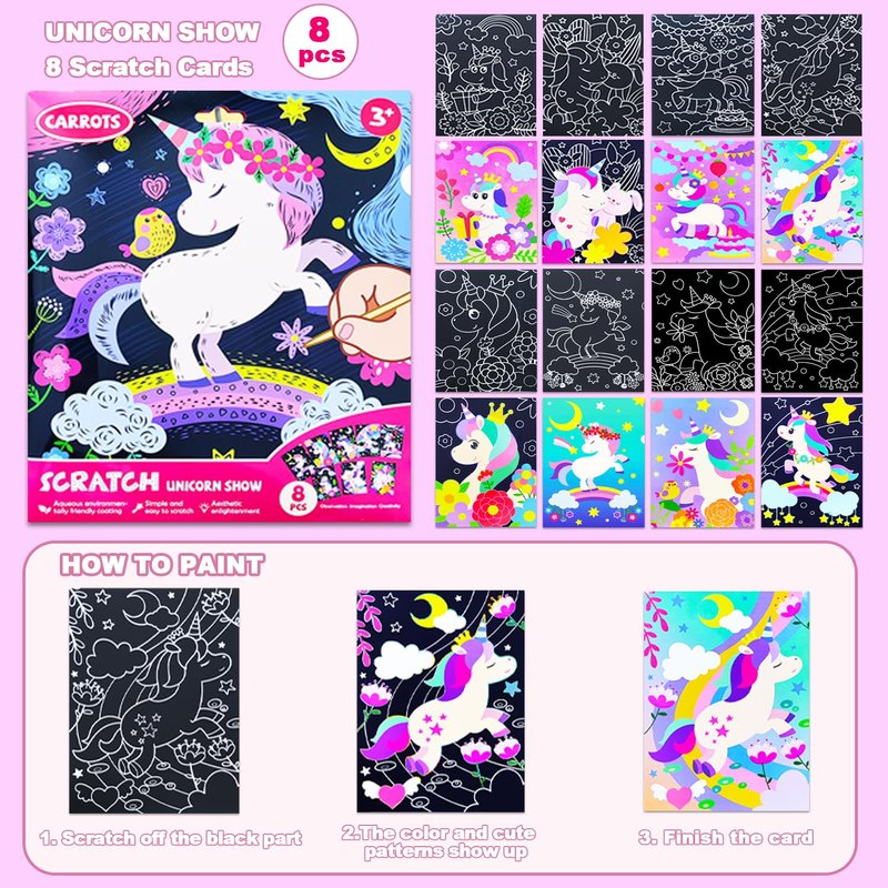 - ✍【Unicorn Scratch Art】This unicorn scratch art activity provides hours of creative fun and makes an ideal arts and crafts gift for kids aged 3 to 8 who love unicorns! The arts & crafts supplies is compact and perfect for all kinds of travel - road trips, flights, and train rides.