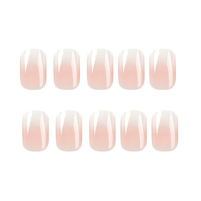 BAOYAALIN Pink White Gradient Press on Nails Short Square Ombre Fake Nails with Design Glue on Nails for Women Girls Acrylic False Nails Stick on Nails Press on Nail for Wedding 24Pcs