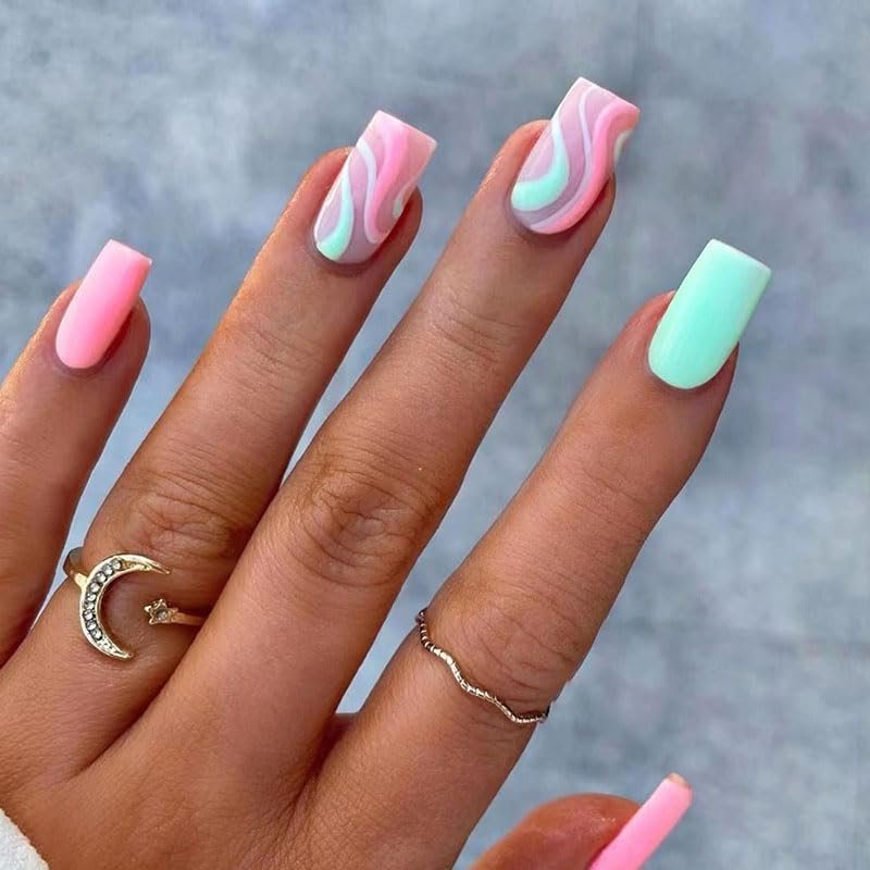 - About After Sales Guarantee - Due to the influence of lighting and shooting scenes, it is normal that there may be some errors between the medium square press glue on nail with simple waves design you received and the picture. If you are not satisfied, please contact us in time, and we will provide free return service