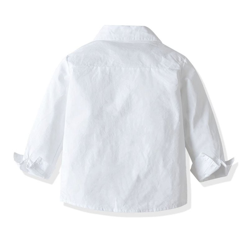 - ✤✤ LONG SUSPENDER PANTS: Kids boys long sleeve button down shirt jeans pants classic tuxedo party outfit. Elastic suspender bib pants, Y-back clip-on braces with stars, elastic waistband with buttons design to fix the braces strap, adjustable elastic straps can adjust the length for best comfort. Solid plain color pants or denim pants with ripped distressed holes, practical pockets at front and back, complete a leisure and good-looking for your prince, son, grandson