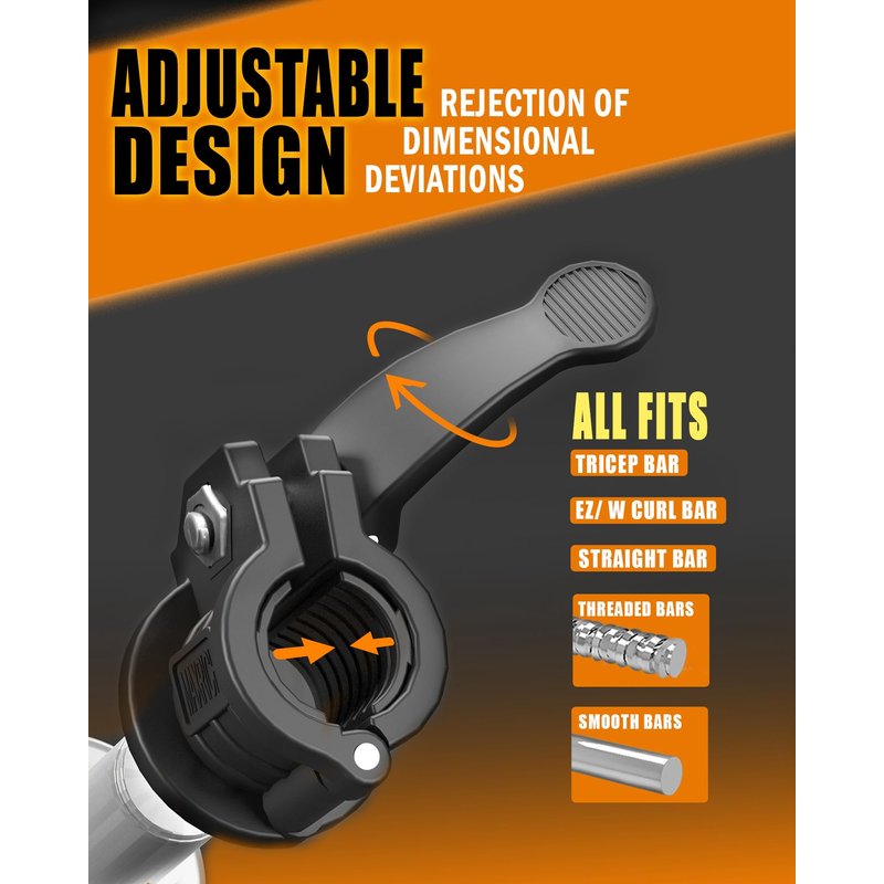 - KEEP THE WEIGHT: Bar clips piston handle, refuse to be too loose or too tight, turn the handle to adjust the size, suitable for 1inch (23mm, 24mm, 25mm), 27mm, 28mm or 30mm Threaded&straight barbell bar. Equipped with TPR inserts, anti-slip texture inside, double protection bursts out a strong grip, load-bearing 400lb+, non-slip, safety lock weight.