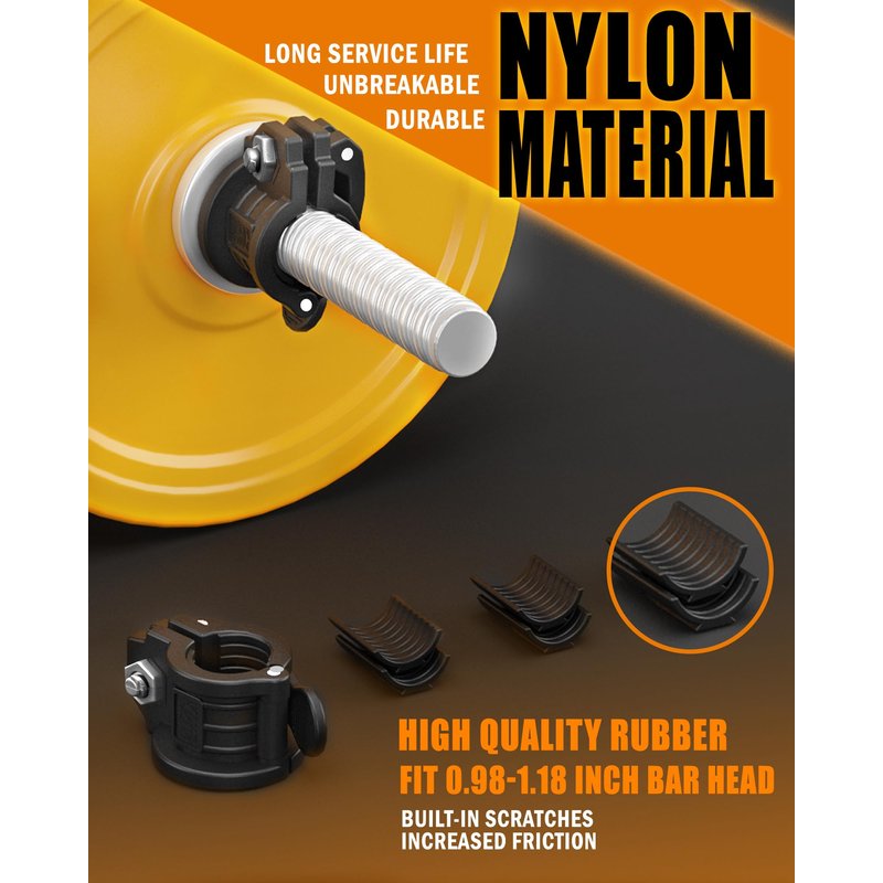 - HIGH-END QUALITY: heavy-duty hard nylon + TPR soft rubber, the complementary combination of soft and hard, lifting clips for bars the nylon outer body is as hard as stone, resistant to falling, wear-resistant, the special rapid rebound of TPR soft rubber can withstand strong pressure and is not easy to deform,Commercial-grade quality to ensure your sports safety