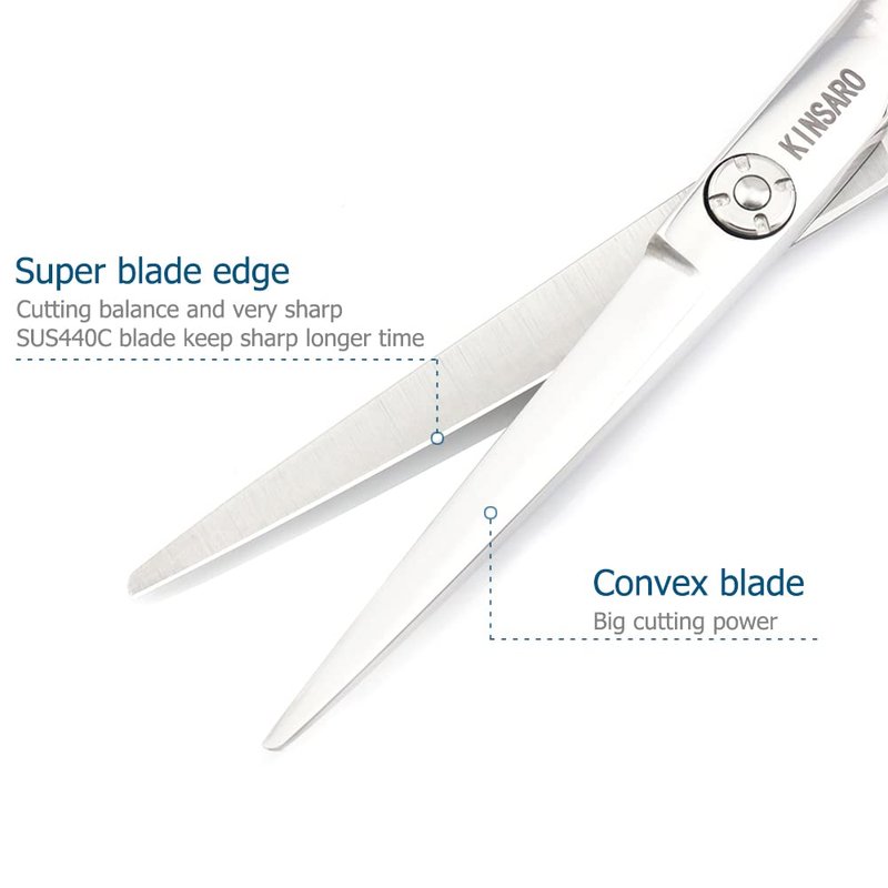 - Brand introduction: KINSARO-Only design,produce and sell professional hair scissors with high cost performance more than 10 years.All of the KINSARO hair scissors can be used at barbers,hair salon or hair studio.All KINSARO hair scissors blade hardness are more than 58HRC.Hardness 58HRC is one requirement of professional level hair scissors.Click "Visit the KINSARO Store" above the title,you will find many styles KINSARO hair scissors.KINSARO hair scissors,because focus so professional.