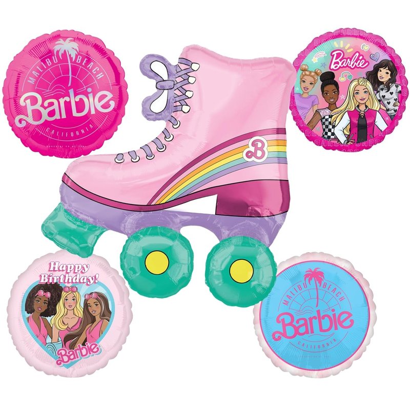 - (1) 30" Barbie Roller Skate Shape Foil Helium Balloon, (1) 17" Round Barbie Dream Together Foil Balloons, (2) 17" Malibu Beach Barbie Round Foil Balloon, (1) 17" Barbie Happy Birthday Foil Balloon. Ribbon Not Included. All Anagram Licensed Balloons are Made in USA. Founded in 1977, Anagram International leads the world in innovating and manufacturing foil balloons.