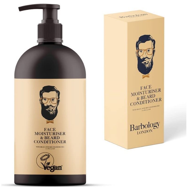 Barbology LONDON 2-in-1 Beard and Face Moisturizer with Jojoba Oil, Argan Oil, and Avocado Oil, Conditions Dry, Itchy and Coarse Facial Hair, 10oz Pump Bottle