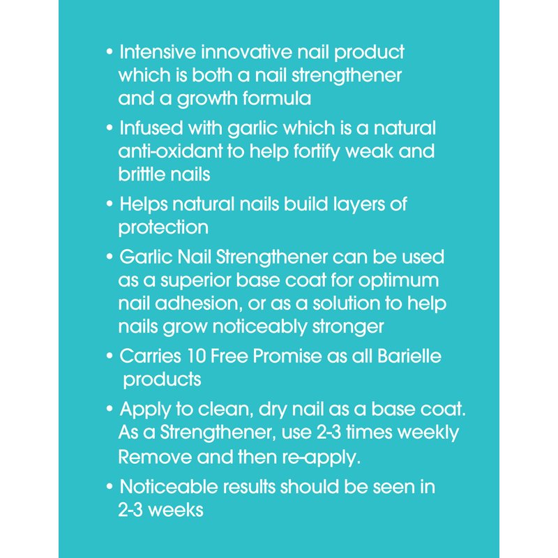 - This Nail Strengthener is infused with garlic, a natural anti-oxidant, to help fortify weak and brittle nails. Our Growth Formula helps natural nails grow strong by building up layers of protection on your natural nail.