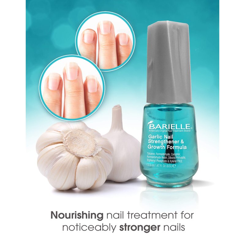 - Our amazing new Garlic Nail Strengthener is a dual functioning product. It can be used as a superior base coat for optimum nail polish adhesion or as an intensive nourishing nail treatment which will help nails become noticeably stronger within weeks.