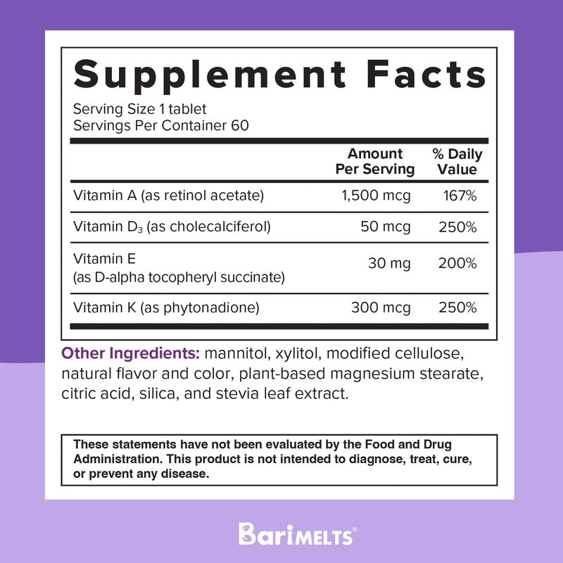 BariMelts ADEK - 1 Month Supply (60 Fast-Dissolving Tablets) - Post-Op Bariatric Vitamins with Vitamin A, Vitamin D, Vitamin E and Vitamin K