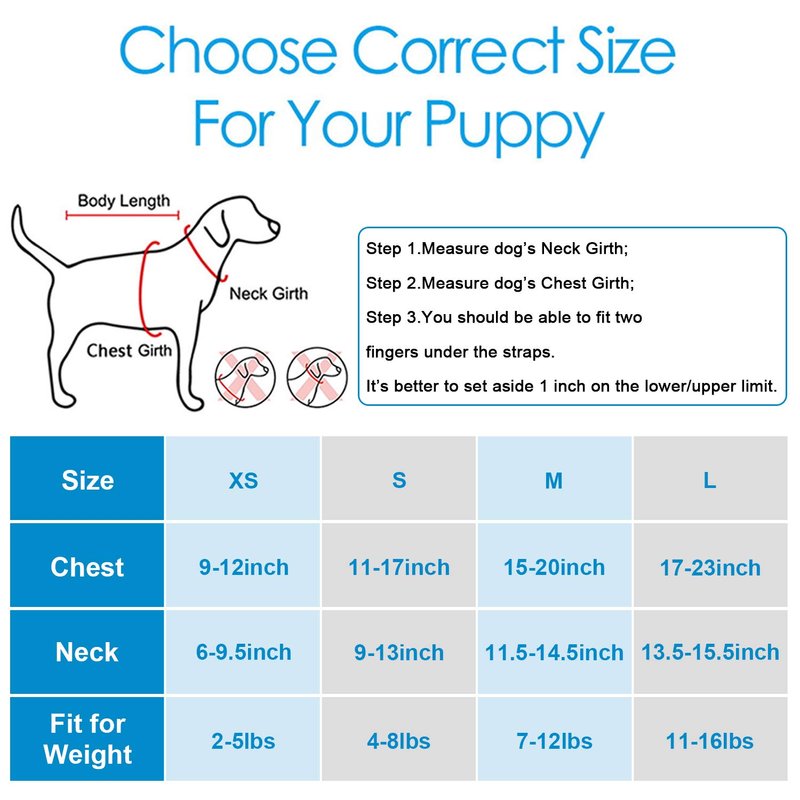 XSMALL – 7"-9" Neck, 10"-12" Chest Girth, Fit for weight 2-5 pounds