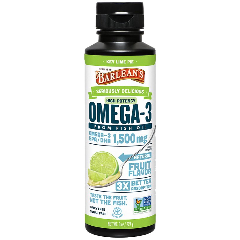 Barlean's Key Lime Pie High Potency Omega 3 Fish Oil Liquid Supplement, 1500mg of EPA& DHA Fatty Acid, Smoothie Flavored & Burpless for Brain, Joint, & Heart Health, 8 oz