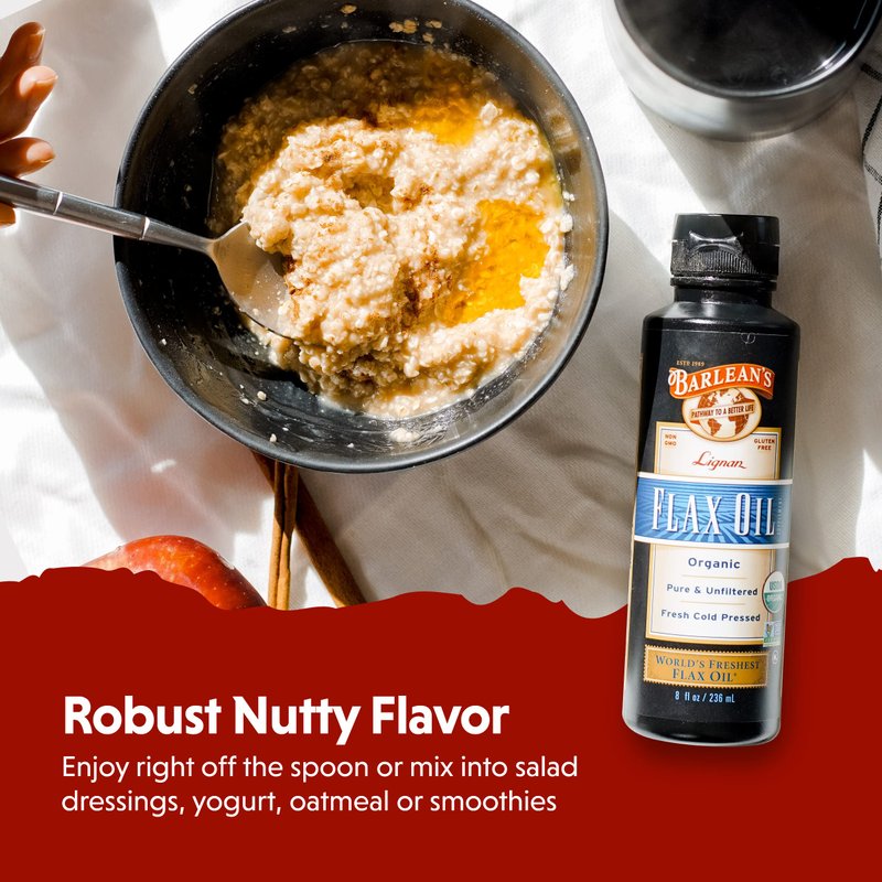 - FRESH AND HIGH QUALITY: Barlean's unfiltered flax oil is made from high quality, organic, non-GMO flax seeds, and is 100% vegan and gluten free. Why take hard to swallow omega 3 supplements when you can eat vegan omega 3 flax seed oil as part of a healthy diet