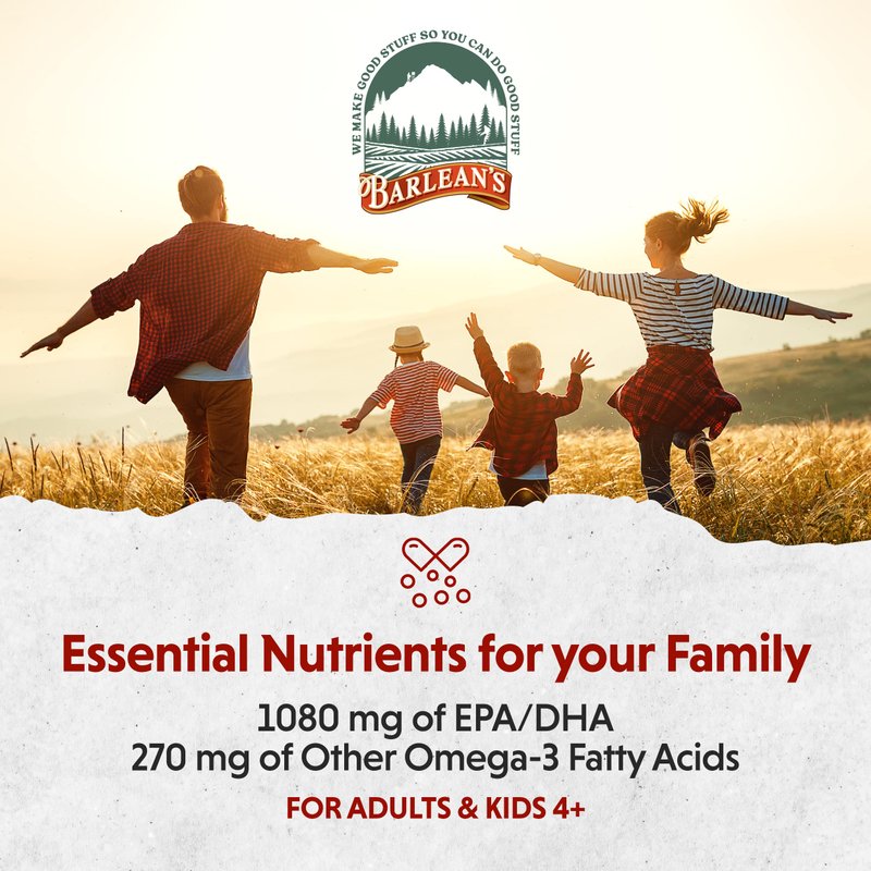 - FEEL YOUR BEST: Omega-3's are essential to a healthy diet, that's why Barlean's invented omega 3 liquid for kids and adults aimed at satisfying even the pickiest eaters. Each serving includes EPA/DHA to support brain, eye, heart, joint, & immune system health
