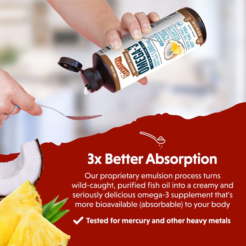 - 3X BETTER ABSORPTION: We make Seriously Delicious Omega 3's with a proprietary process that turns wild caught, purified fish oil into a creamy and delicious omega 3 supplement that is highly absorbable and tested for mercury and other heavy metals. Because of our emulsified process Barlean's omega swirl is easier to digest, more absorbable, and no fish burps